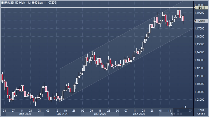 При этом на этой неделе доллар во вторник достиг 2-недельного минимума, а в среду начал восстанавливать потери благодаря публикации протокола июльского заседания FOMC. Обусловленный коронавирусом кризис будет оказывать существенное давление на экономическую активность, занятость и инфляцию в краткосрочной перспективе и создает значительные риски для перспектив экономики в среднесрочной перспективе, сообщили «минутки» FOMC, охладив оптимизм рынков.