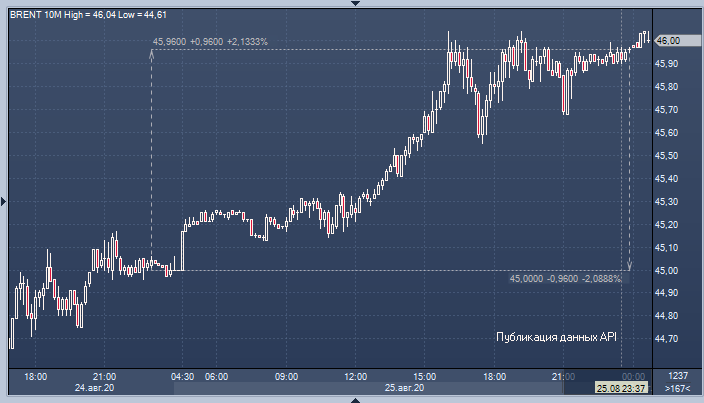 Отчет API составляется по данным, которые предприятия предоставляют на добровольной основе. Он традиционно предшествует публикации Министерством энергетики США официальной еженедельной статистики, которая на текущей неделе будет представлена вниманию участников рынка в среду, 26 августа, в 17:30 мск.
