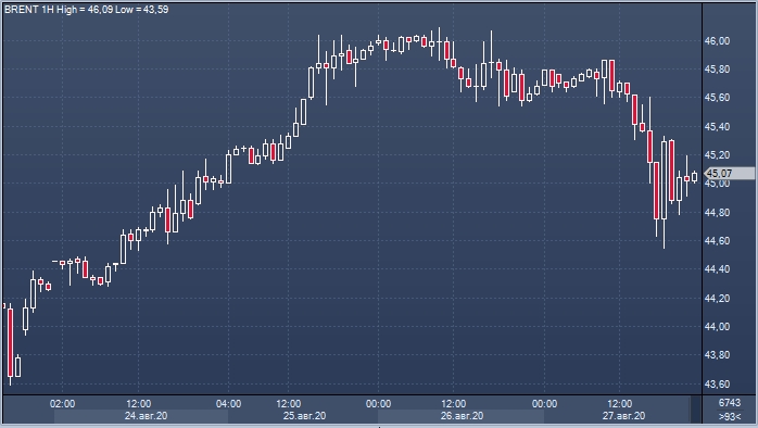 Укрепление рубля происходило на фоне возвращения цен на нефть марки Brent выше $45 за баррель. Нефтяные котировки были под давлением большую часть четверга и в начала американской сессии падали до $44,55 за баррель.