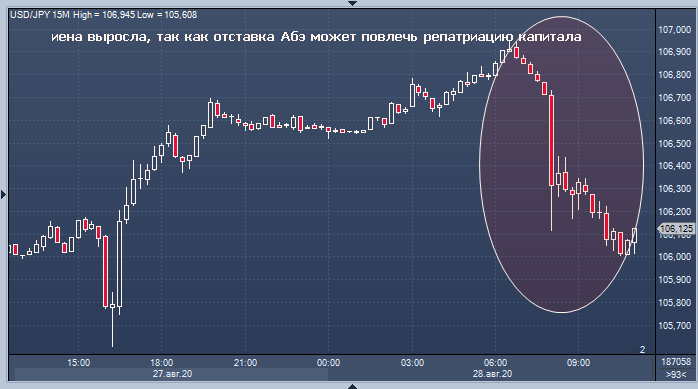Иена считается валютой-убежищем в силу статуса Японии как крупнейшей страны-кредитора. Аналитики заявили, что иена подскочили после новостей об отставке Абэ, потому что политическая неопределенность может побудить японских инвесторов вернуть деньги домой и конвертировать их в иены.