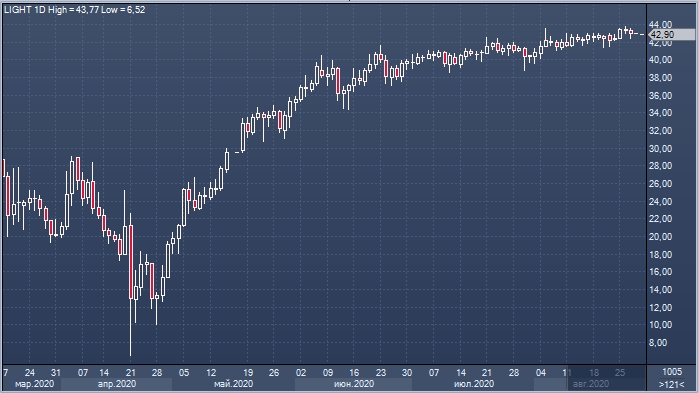 На этой неделе котировки WTI поднялись до самого высокого значения с 6 марта, поскольку в США из-за урагана была остановлена добыча на 3 млн баррелей в день При этом Лаура приближалась к берегу со скоростью 240 км/ч. Эта скорость была сопоставима скорости урагана Катрина, который в 2005 году привел к колоссальным разрушениям во Флориде.