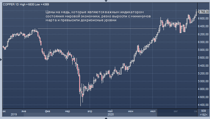 Большую роль в этом сыграло и снижение курса доллара, индекс которого вернулся к уровням мая 2018 года. Хорошую динамику также показали товарные валюты и акции индустриальных компаний. В общем, все только начинается, но ставка на рост инфляции выглядит очевидной.