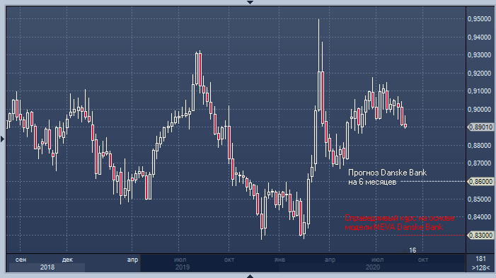 В условиях сохранения актуальности темы рефляции, эффект неблагоприятного развития Брекзита на курс фунта может быть смягчён, однако в Danske склонны считать, что Великобритания и ЕС всё же договорятся и у фунта появится шанс наверстать упущенное. В банке полагают, что компромисса удастся добиться поздней осенью и, ожидают снижения EURGBP к 0.88 (прогноз был снижен с 0.90) в трехмесячной перспективе и к 0.86 в течение шести месяцев. В ближайшее же время от пары стоит ожидать дальнейшей консолидации около 0.90, при этом в Danske Bank не исключают рывка к 0.92 при глобальном ухудшении настроя инвесторов или же негативных сигналов со стороны переговорщиков по Брекзиту.