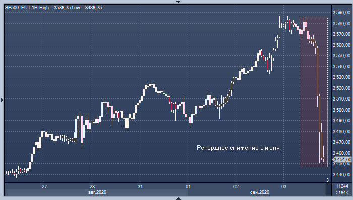 Рынок акций США закрыл среду рекордным ростом с июля, а на следующий же день не только потерял все предыдущие достижения, но и показал рекордное с июня снижение. По состоянию на 20:00 московского времени S&P 500 терял 3.5%, акции Apple снижались на 6.6%, акции Tesla – на 7.7%, а акции Nvidia – на 9.3%.
