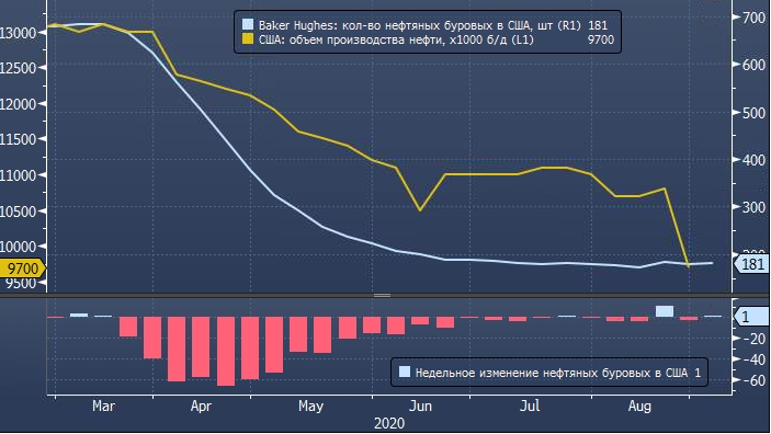 В апреле, мае и июне не было ни одной неделе, когда число нефтяных установок продемонстрировало рост. В июле была одна неделя, когда показатель вырос на 1 установку. На предпоследней неделе в августа чилос активных нефтяных буровых увеличилось на 11 установок. Это максимальный недельный прирост с середины января.