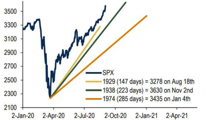 Медвежий рынок в США продлился в этом году всего 34 дня, что является рекордно низким значением, а индекс S&P 500 показал рекордно быстрое восстановление (см. график в начале статьи — прим. ProFinance.ru).