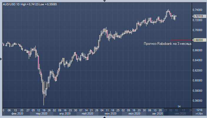 Австралийский доллар начал сентябрь с роста к максимальной отметке с августа 2018 года, и на фоне ослабления оптимизма на фондовых рынках держится очень неплохо, однако в Rabobank сомневаются, что быки найдут в себе силы для развития восходящего тренда. В банке полагают, что AUDUSD ждёт коррекция, и пара в ближайшие три месяца окажется в районе 0.68.