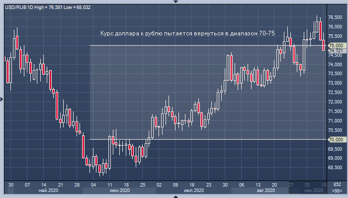 Возвращения курса доллара к рублю в диапазон 70-75 потребует нормализации внешнеполитического фона, стабилизации цен на нефть и дальнейшего ослабления американской валюты, пишет экономист ING Дмитрий Долгин.