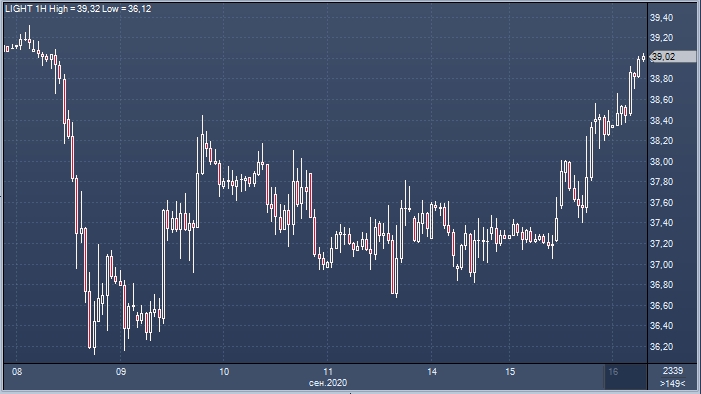 На азиатских торгах в среду, 16 сентября, цена WTI достигла 39,02 за баррель, прибавив 1,93% к закрытию во вторник.