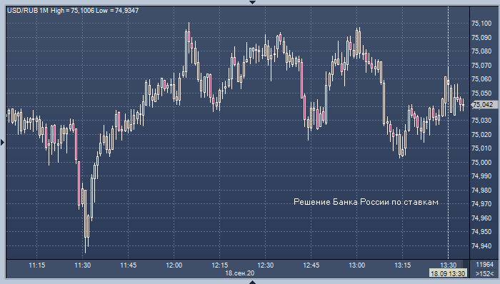 Приведенная выше иллюстрация отражает минутный график курса доллара к рублю