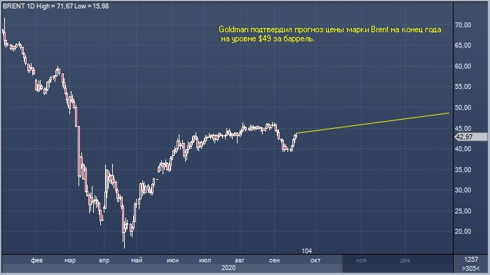 Goldman подтвердил прогноз цены марки Brent на конец года на уровне $49 за баррель.