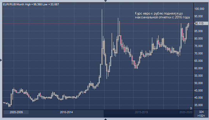 Евро не может похвастаться позитивной динамикой против доллара, однако в паре с рублём быки продолжают радоваться жизни — курс EURRUB к настоящему времени достиг отметки в 90.40 рублей за евро.