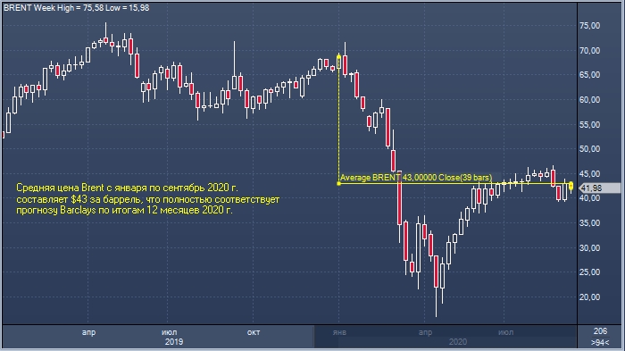 Банк Barclays повысил прогноз цен на нефть на 2020 год на 2 доллара за баррель для североморского сорта Brent и на аналогичную величину для американского бенчмарка WTI. При этом прогноз на 2021 год был оставлен без изменений.
