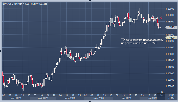 В TD Bank констатируют, что быки в EURUSD выдохлись, и рекомендуют использовать попытки восстановления пары для открытия коротких позиций с расчётом на коррекцию к 1.1550 в ближайшие дни.