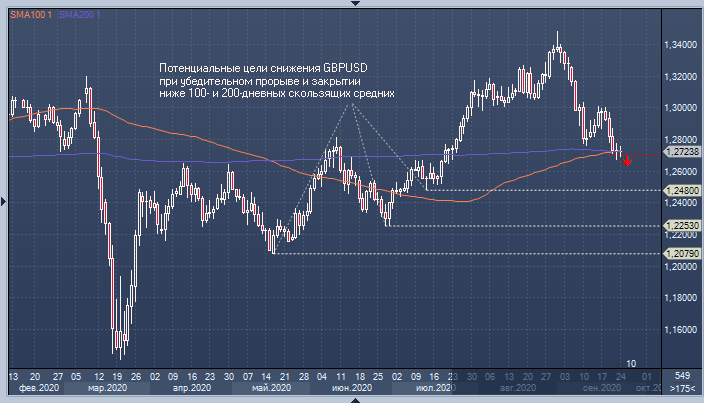 Однако при нынешней атмосфере на финансовых рынках, где растёт пессимизм по поводу восстановления мировой экономики и страх перед перспективой дальнейшего роста напряженности внутри США в условиях приближающихся президентских выборов, GBPUSD может найти в себе силы для развития нисходящей динамики. В Citi отмечают, что закрытие ниже 1.2624/26 будет этому подтверждением и откроет дорогу к поддержке в районе 1.2480, после чего фокус сместится к 1.2250 (минимумы июня) и, возможно, к майским минимумам ниже 1.21.