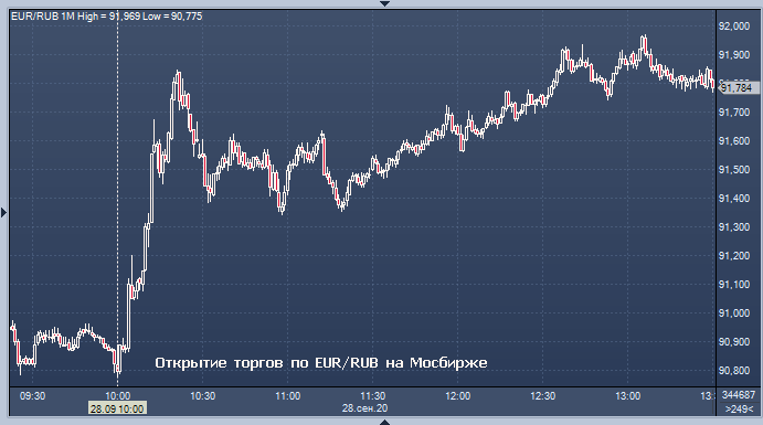 Таким образом, по официальному курсу ЦБ доллар вырос на 1 рубль 86 копеек, а евро вырос к рублю на 1 рубль 81 копейку по сравнению с официальным курсом понедельника. Объем торгов на Московской бирже к 13:24 мск понедельника составил 914,8714 млрд рублей или 11 909,3645 млн долларов. Рубль сегодня обновил многолетние минимумы на фоне усугубления ситуации со второй волной коронавируса в России и в мире, н фоне падения турецкой лиры до нового рекордного минимума и конфликта в Карабахе, на фоне сделки Яндекса по покупке банка Тинькофф.