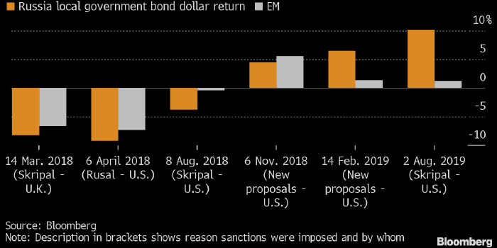 - Белый дом полтора года размышлял о том, как ответить на схожее нападение на семью Скрипалей, которое произошло в марте 2018 года. Введенные год назад санкции запрещают американским банкам покупать новые выпуски российских суверенных евробондов, но намного более крупный рынок ОФЗ ни под какие ограничения при этом не попал;
