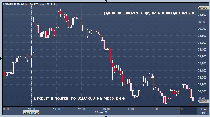 Рубль отскочил, как только была достигнута первая серьезная цель спекулятивной игры против него — отметка 80 за доллар. По времени это совпало с заявлениями Пескова по Карабаху, но ключевой причиной роста все же стоит считать фиксацию прибыли спекулянтами по шортам после достижения психологического рубежа. Почему? Потому что дальнейшее падение угрожает долларизацией экономики и может быть сочтено Банком России как угроза финансовой стабильности, что приведет к увеличению валютных интервенций в поддержку рубля. То есть рынок должен немного попривыкнуть к текущим уровням, осмотреться, оценить баланс спроса и предложения на текущем уровн, послушать риторику регулятора.