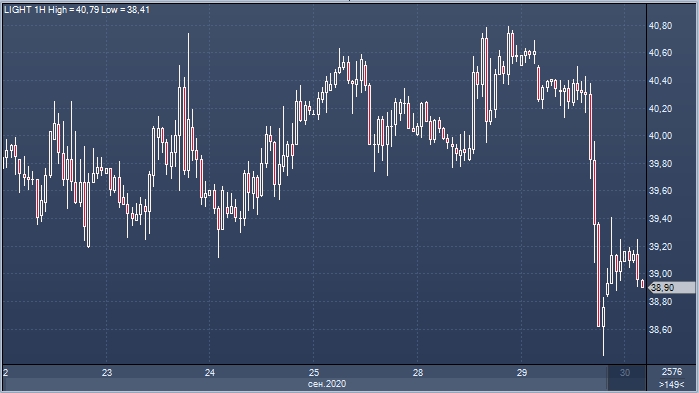 На азиатских торгах в среду, 30 сентября, цена WTI достигла $38,92 за баррель, подешевев на 0,91% к закрытию во вторник.