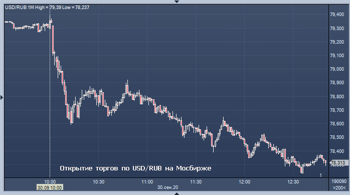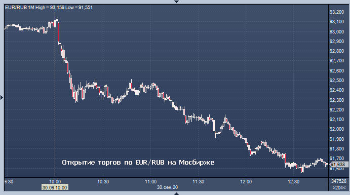 Таким образом, по официальному курсу ЦБ доллар упал к рублю на 90 копеек, а евро упал к рублю на 59 копеек по сравнению с официальным курсом среды. Объем торгов на Московской бирже к 12:39 мск среды составил 954,0446 млрд рублей или 11 972,7750 млн долларов. Рубль сегодня корректируется вверх вслед за падением доллара на форексе и на фоне слухов о том, что власти отдали госкорпорациям приказ продать излишки валюты.