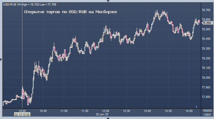 Таким образом, по официальному курсу ЦБ доллар вырос к рублю на 82 копейки, а евро вырос к рублю на 85 копеек по сравнению с официальным курсом пятницы. Объем торгов на Московской бирже к 14:11 мск пятницы составил 1 078,0960 млрд рублей или 13 950,9867 млн долларов. Рубль сегодня возобновил снижение вслед за рисковыми активами по всему миру после новостей об инфицировании Трампа и его супруги коронавирусом.