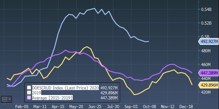 - Запасы бензина: -1.465 млн баррелей прогноз: -0.555 млн баррелей неделей ранее: +0.683 млн баррелей