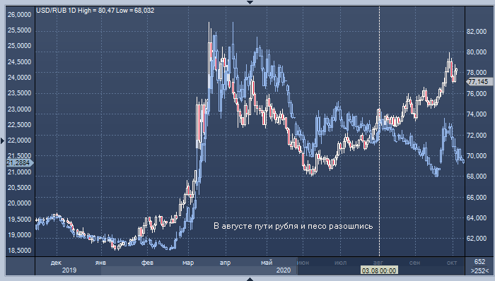 Есть и другие факторы, которые делают нынешнюю ситуацию непохожей на 2016 год. Например, четыре года назад рост цен на нефть поддерживал спрос на российскую валюту, тогда как сегодня низкие цены на энергоносители давят на рубль и никак не влияют на песо.