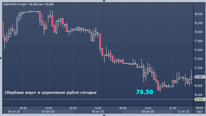 Аналитики Sberbank CIB считают, что сегодня курс рубля немного подрастет - до 76,5 руб. Они отмечают, что утром в понедельник рубль упал из-за ослабления китайского юаня. Рубль отступил до уровня 77.10 руб./$1. В сбербанке отсылают к оптимизму инвесторов на мировых рынках, хотя в США в понедельник выходной — День Колумба. Из-за праздника торги будут проходить спокойно. Отсюда прогноз, что он вернется к 76,5 руб./$1.