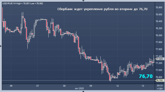 Аналитики Sberbank CIB констатируют повсеместное укрепление доллара США утром вторника. Это является основной причиной ослабления рубля сейчас, в первый час торгов после открытия Московской биржи. Однако в Сбербанке ждут публикации сегодня сильных макроэкономических и корпоративных данные из США, что, по мнению специалистов банка, должно усилить спрос на рискованные активы. Это в свою очередь поможет и рублю. Поэтому эксперты Sberbank CIB дали прогноз на вторник, согласно которому рубль укрепиться примерно до 76,7 руб./$1.