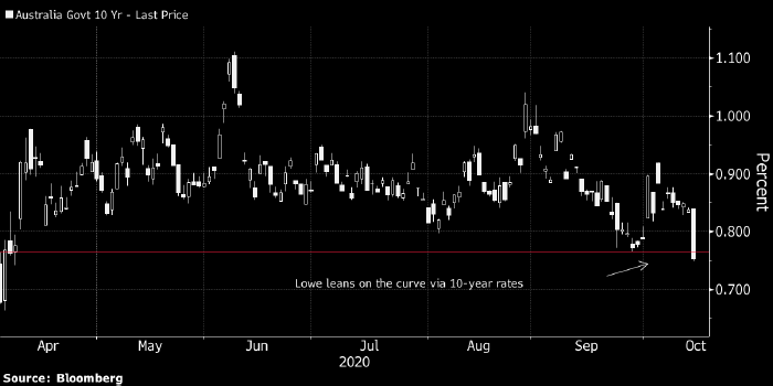 Выступление Филипа Лоу спровоцировало заметное снижение доходности австралийских бумаг по всему спектру рынка. РБА еще в марте приступил к контролю кривой доходности, однако в рамках этой стратегии пока ограничивается лишь 3-летними бумагами.