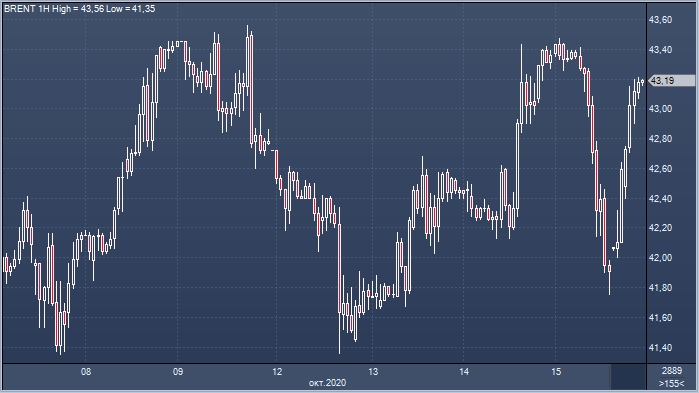 На этой иллюстрации приведен график цены нефти Brent с интервалом 1 час
