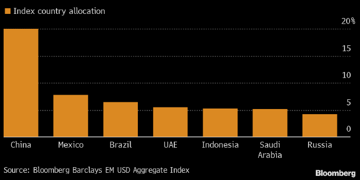 Приведенный выше график отражает долю облигаций некоторых развивающихся стран в индексе Bloomberg Barclays EM USD Aggregate Index. Бумаги Китая, Саудовской Аравии и России имеют в нем довольно большой вес, однако для Candriam они не подходят из-за низкого рейтинга «ответственного инвестирования»