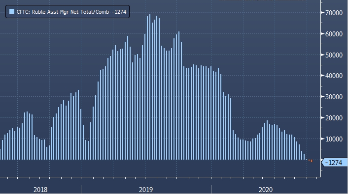 На иллюстрации представлена нетто-позиция по фьючерсам на рубль к доллару управляющих активами.