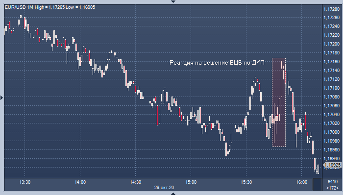 Сегодня участники рынка не ждали от ЕЦБ ничего особенного: регулятор воздержался от объявления о новых стимулирующих мерах, однако в сопроводительном заявлении дал понять, что риски явно нацелены вниз. Поэтому ЕЦБ планирует скорректировать свою политику, как только в декабре появятся «более ясные» прогнозные оценки (следующее заседание регулятора по вопросам денежно-кредитной политики состоится 10 декабря).