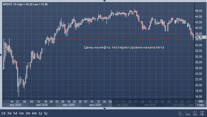 Сегодня черное золото тестирует минимальные уровни с начала лета, и ближайшие недели обещают стать довольно турбулентными: завтра в США пройдет голосование на выборах президента США и в Конгресс, в Европе вводятся новые локдауны, а добыча нефти в Ливии продолжает расти.