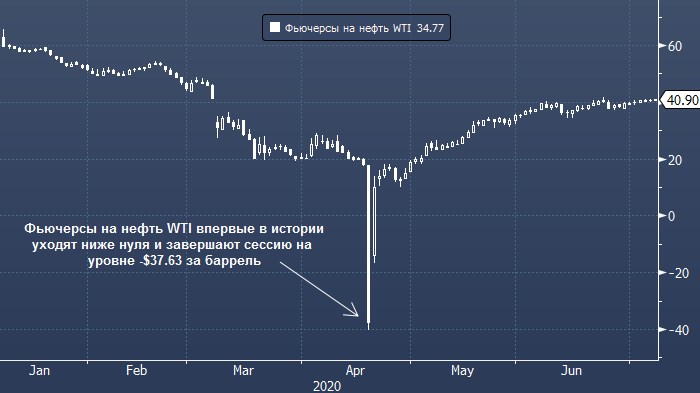 В ту сессию торги на NYMEX завершились на отметке $37.63 за баррель, и на следующий день Мосбиржа приостановила торги этим инструментом и приняла решение исполнить майский фьючерс на нефть WTI по цене его исполнения на NYMEX.