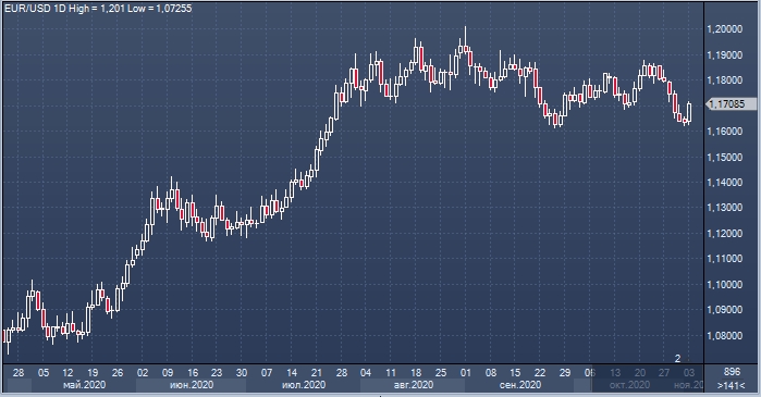 После торгов в узких диапазонах в течение большей части октября доллар вырос до четырехнедельного максимума в пятницу из-за опасений, что результаты выборов будут оспорены в суде, а также экономического ущерба от возобновления карантина в Европе.