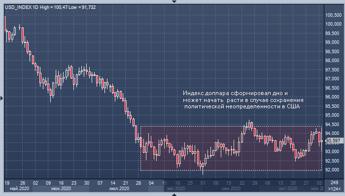 Спорный результат выборов, который выглядит наиболее вероятным, спровоцирует дальнейший рост волатильности. Это приведет к усилению спроса на защитные активы, снижению вероятности скорого согласования новых стимулов в США и, следовательно, к росту курса доллара, предупреждает глава департамента развивающихся рынков Amundi Asset Management Ерлан Сыздыков.