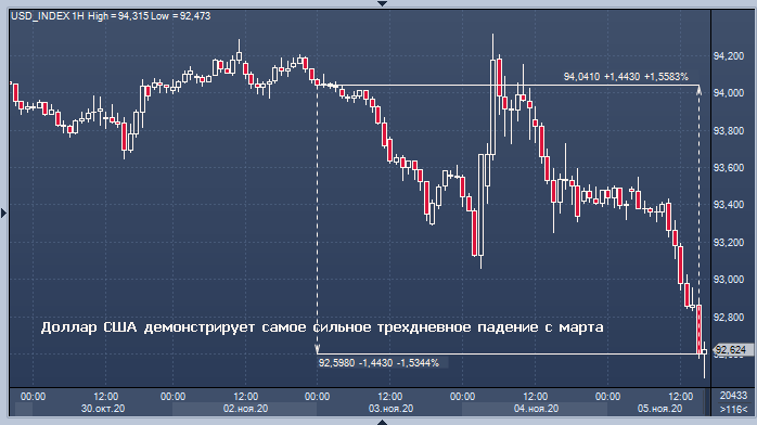 Трейдеры также сократили спрос на доллары как защитный актив, поскольку демократ Джо Байден приблизился к победе в президентской гонке в США. Представители избирательных комиссий подсчитали голоса в нескольких штатах, которые определят исход выборов.