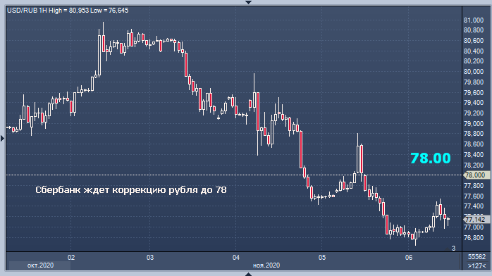 Рубль в пятницу может отыграть назад и вернуться к уровню 78 руб./$1, считают аналитики Sberbank CIB. Эксперты Сбербанка сослались на ухудшение ситуации с коронавирусом в США и Европе. Однако уже к вечеру пятницы рубль снова может укрепиться, если прояснятся итоги выборов в США и выйдут хорошие данные по американскому рынку труда.