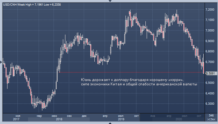 «Азия остается одним из регионов, который выгодно отличается от других. Особенно стоит отметить юань», - пишет стратег. - «Хороший «кэрри» и относительно сильный экономический рост - хорошая комбинация для заработка в зимние месяцы, и именно валюты таких стран покажут наилучшую динамику».