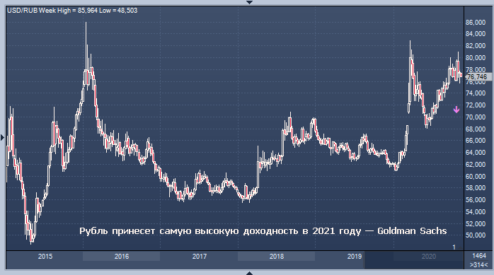 Goldman «настроен более оптимистично» по отношению к рублю, чем к турецкой лире, потому что российская валюта торгуется со значительной премией за политический риск. Этот риск начал закладываться в котировки за несколько месяцев до выборов в США. Об этом написали нью-йоркские аналитики банка, в том числе Зак Пандл, в записке для клиентов. Меньшее, чем ожидалось, усиление напряженности вокруг России после выборов в США может объясняться «значимым тактическим попутным ветром» для рубля, учитывая, что в центре внимания новой администрации США могут быть внутренние проблемы в разгар пандемии.