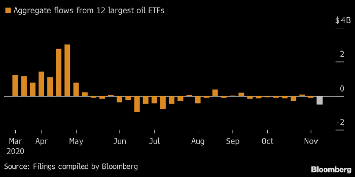 Впрочем, инвесторы выбрали довольно интересный момент для выхода из этих инструментов, так как цены на нефть почти вернулись в область многомесячных максимумов после появления новостей о высокой эффективности вакцин, разрабатываемых Pfizer и Moderna.