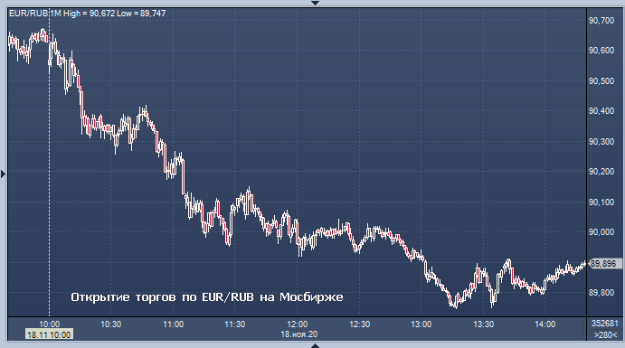 Таким образом, по официальному курсу ЦБ доллар упал к рублю на 33 копейки, а евро упал к рублю на 16 копеек по сравнению с официальным курсом среды. Объем торгов на Московской бирже к 14:14 мск среды составил 1 020,5655 млрд рублей или 13 383,9386 млн долларов. Рубль растет сегодня благодаря началу налогового периода, росту нефти и мировых акций.