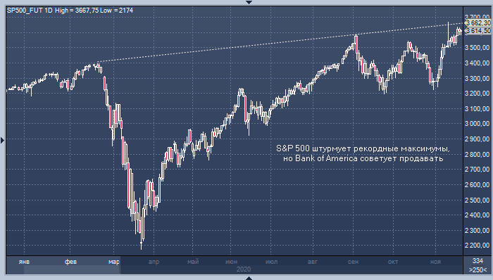 «Инвесторы могут продолжить покупать акции и в четвертом квартале, но мы говорим: продавайте на новостях о вакцинах, так как мы думаем, что медведей на рынке почти не осталось», - отмечают эксперты банка. - «Резкий рост оптимизма на рынке акций может быть признаком формирования вершины».