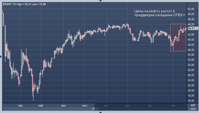 Банк отмечает, что сейчас довольно удачное время для этих сделок, так как одномесячная подразумеваемая волатильность этих опционов в последние недели снизилась, несмотря на приближение министерской встречи ОПЕК+, запланированной на 1 декабря.