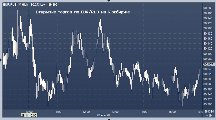 Таким образом, по официальному курсу ЦБ доллар упал к рублю на 2 копейки, а евро вырос к рублю на 14 копеек по сравнению с официальным курсом четверга. Объем торгов на Московской бирже к 15:58 мск четверга составил 411,7724 млрд рублей или 5 455,9117 млн долларов. Рубль и российские акции сегодня консолидируются на достигнутых максимумах при очень низкой активности торгов. В США празднуется день Благодарения, и активность низкая на всех мировых биржах. Волатильность вернется только завтра.
