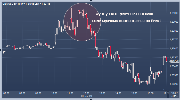 Во вторник впервые за три месяца фунт ненадолго превысил отметку 1,34 доллара США, поскольку участники рынка сохраняли оптимизм в отношении шансов на заключение торговой сделки после Брексита, несмотря на отсутствие ощутимого прогресса в переговорах.