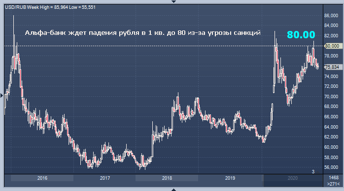 - в первом квартале 2021 года с возможностью возврата к уровню 80 руб./$1.