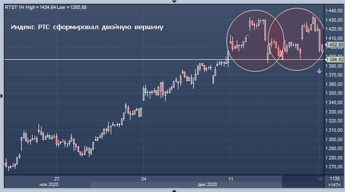 График индекса РТС интервалами в 60 минут